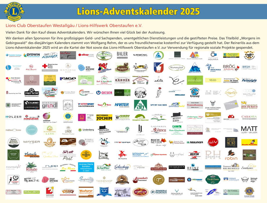 | 2021 | je einen Gutschein im Wert von 50,00 € Abzuholen bei: Maler- und Lackierermeister Gasser - Gewinn bitte abholen bei Geser Erdwärme GmbH & Co. KG, Mywiler 160 1/4, 88145 Opfenbach, Tel.: 0175 1616576; |